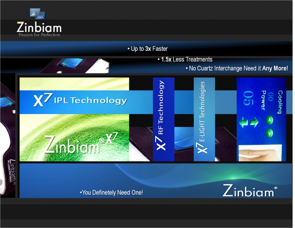 Get a Preview of features of the NEW ZINBIAM X7 ......................................................... 63% less time spent per treatment, translating in more patients/clients per day. -Build for Perfection in every Laser shot but at same time can last 36 performing just like new. -Full lifetime warranty and parts.